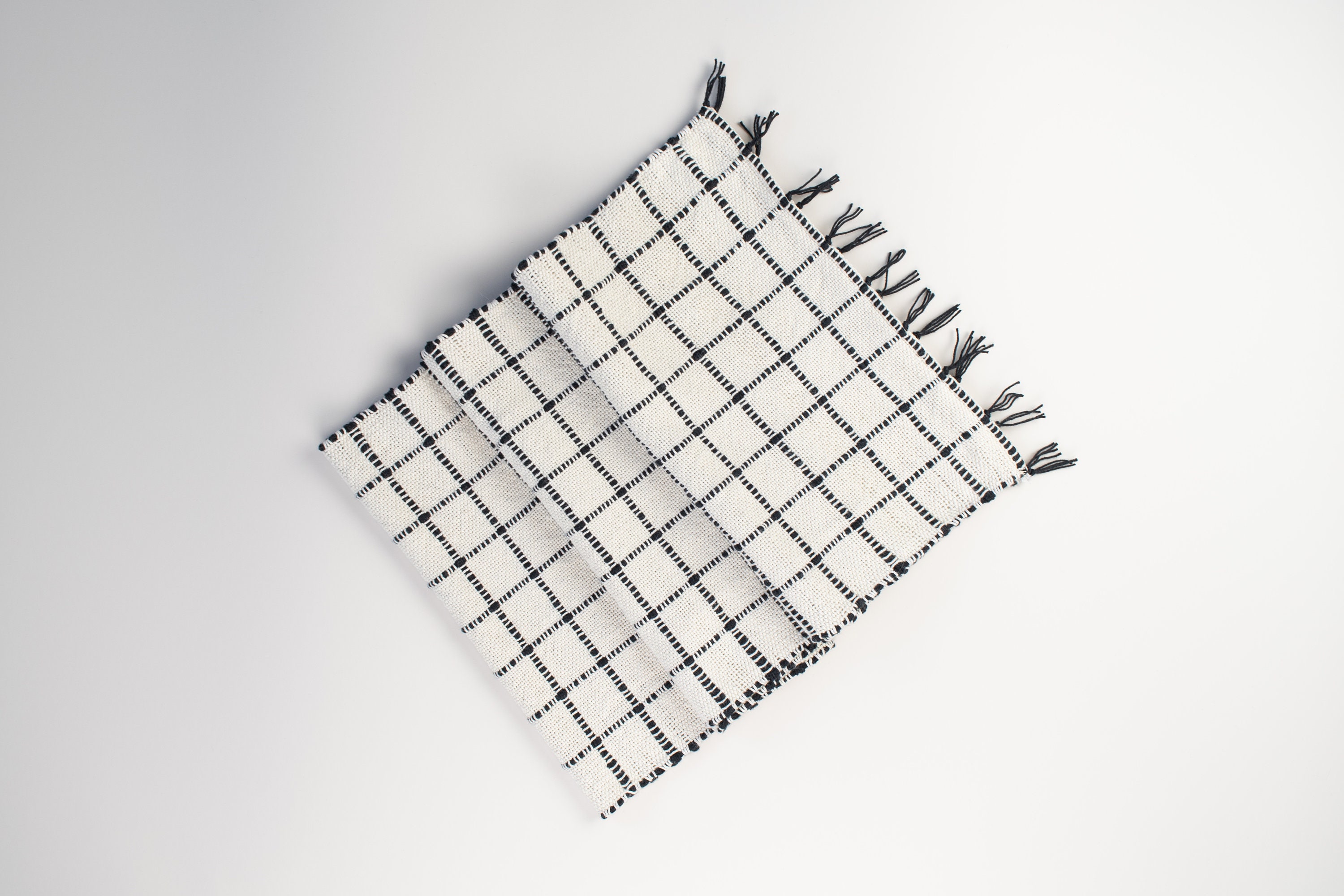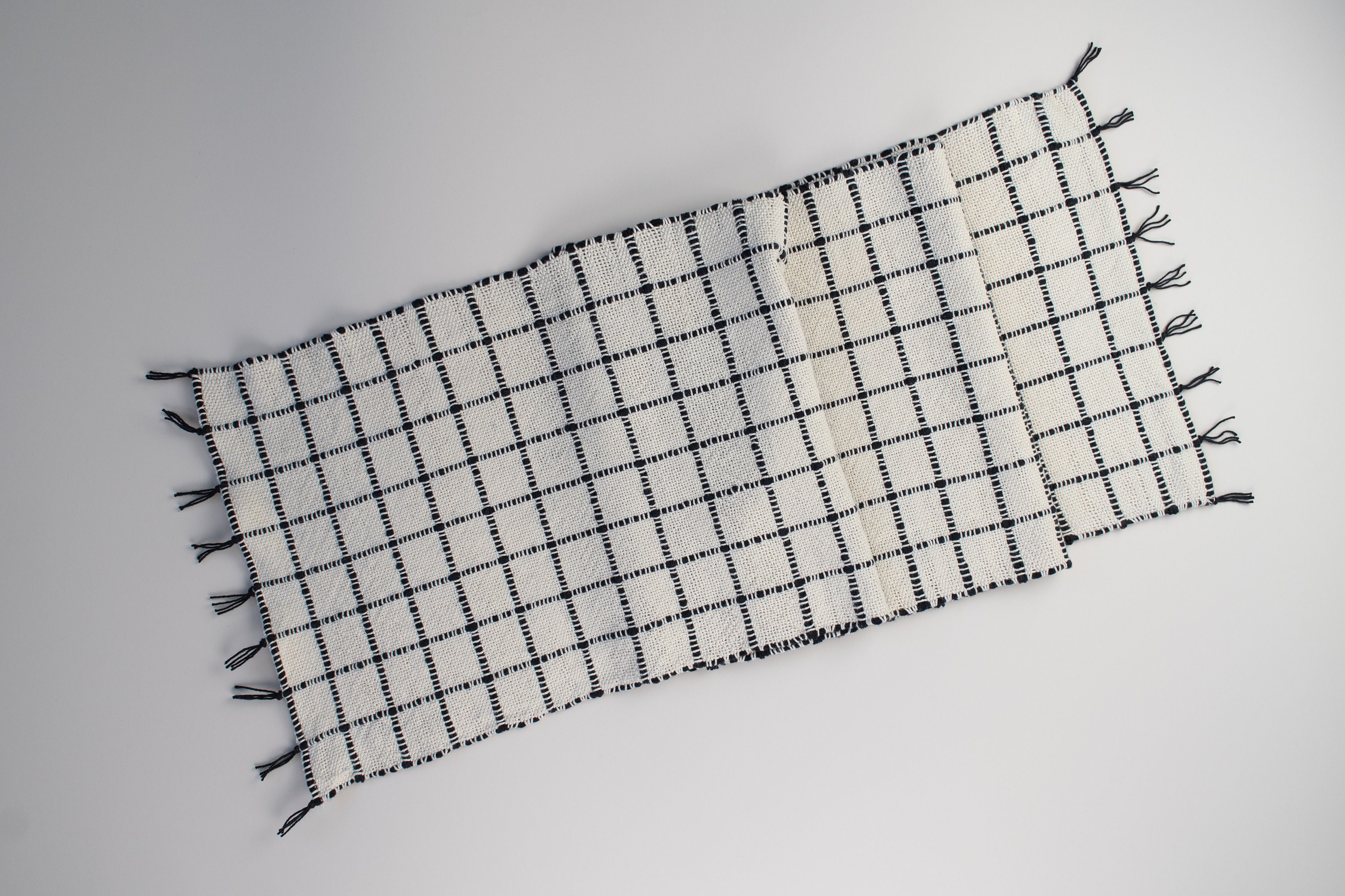 This handwoven table runner kit is the perfect rigid heddle project for a rigid heddle beginner or for someone looking for a simple project. The kit includes two colors of 100% cotton yarn and weaving pattern to create a 12" X 72" Windowpane style table runner.