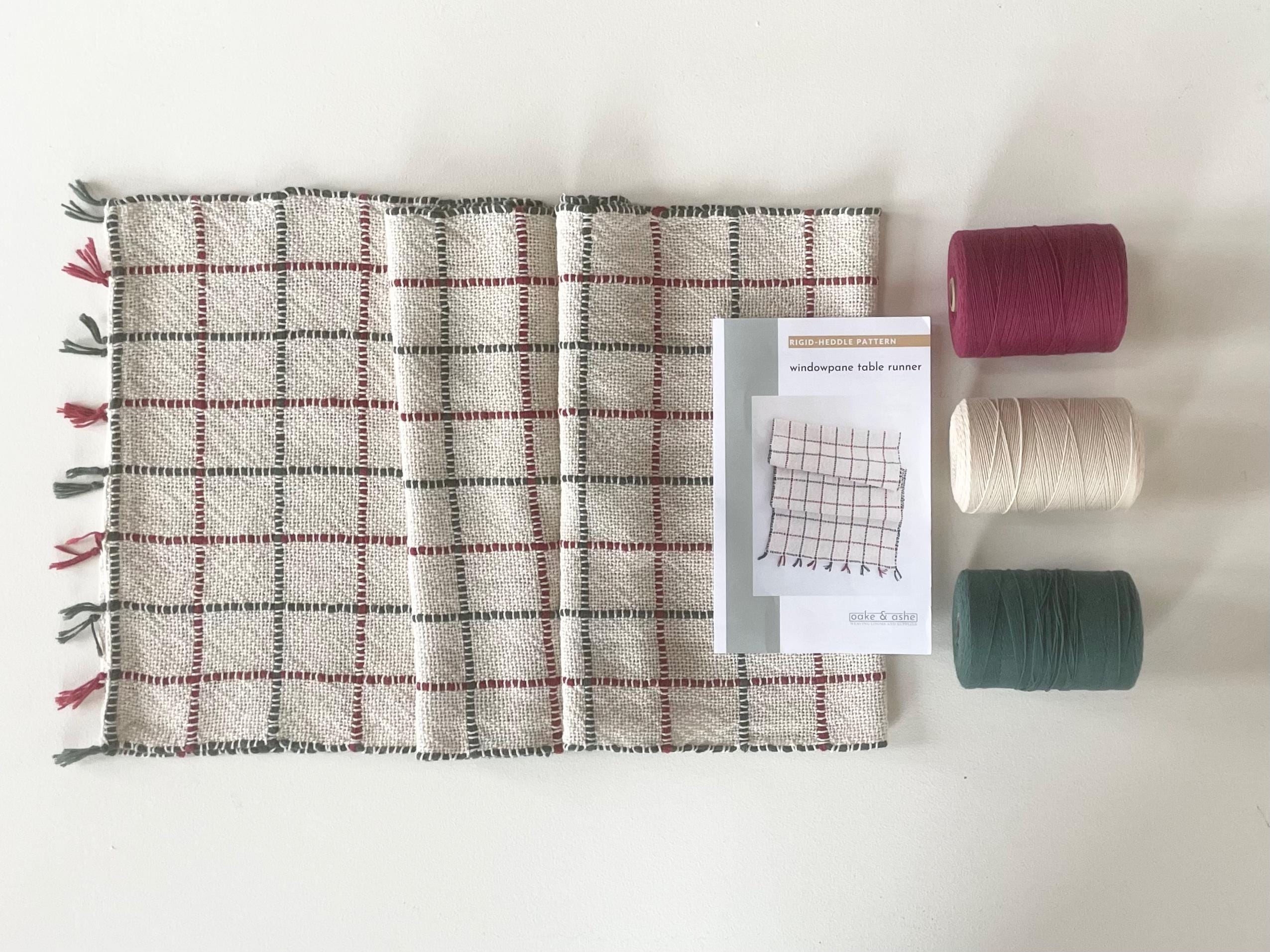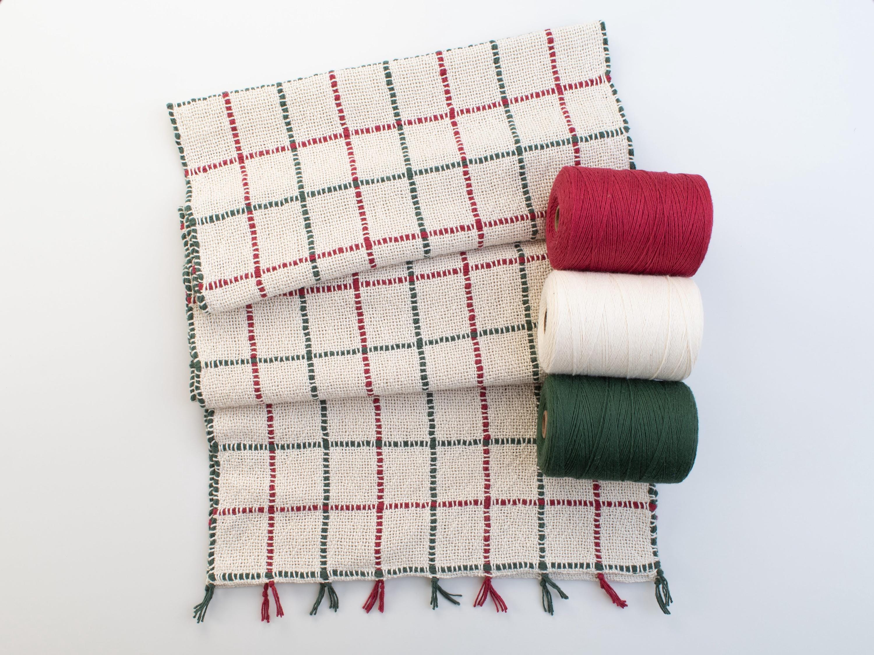 This handwoven table runner kit is the perfect rigid heddle project for a rigid heddle beginner or for someone looking for a simple project. The kit includes two colors of 100% cotton yarn and weaving pattern to create a 12" X 72" Windowpane style table runner.