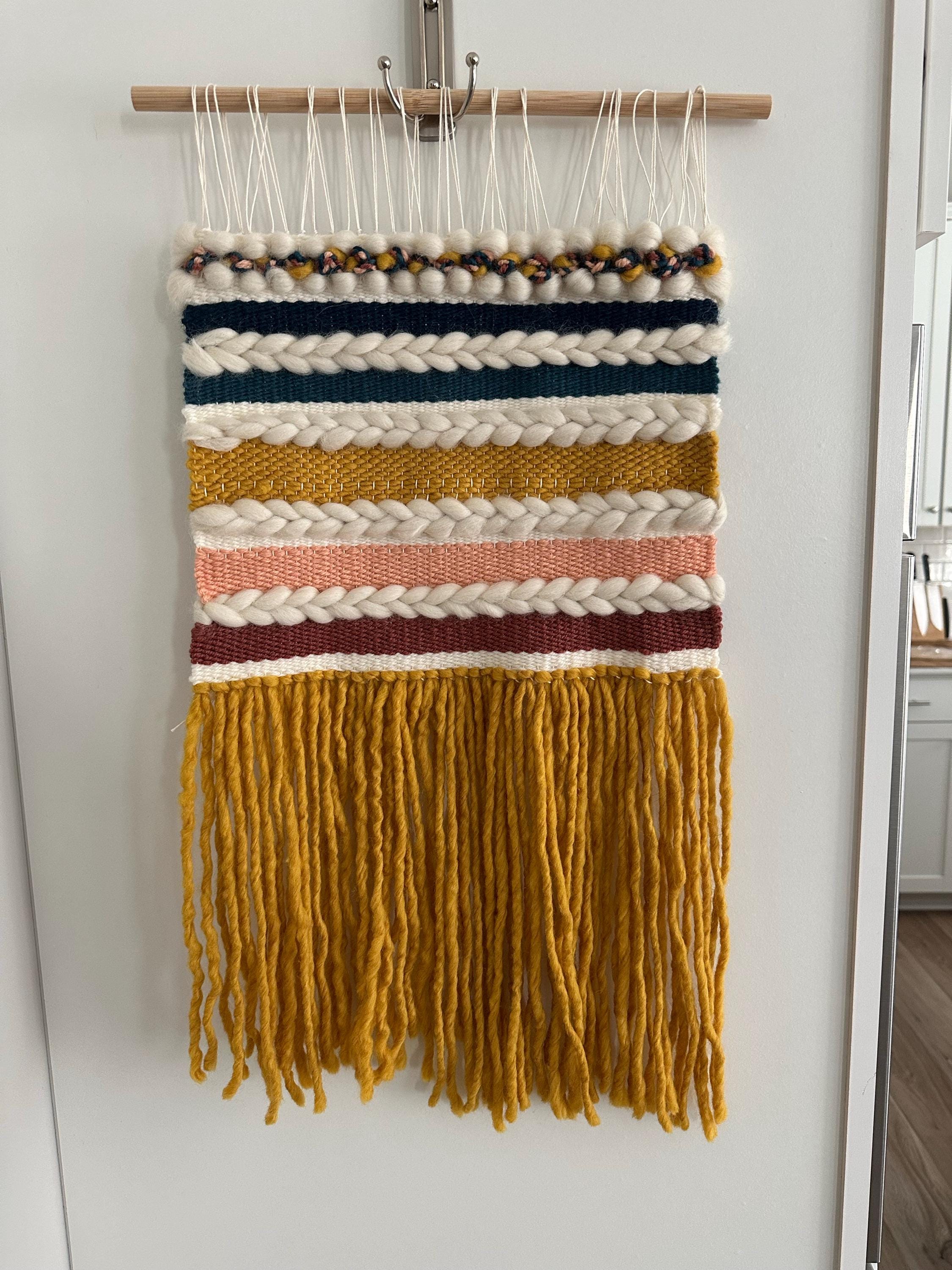 These yarns were thoughtfully chosen with the intention of creating a beautiful woven wall hanging. Ideal for the frame loom. They are 100% wool and contain varying thicknesses. Enough yarn to create two small or one large wall hanging.